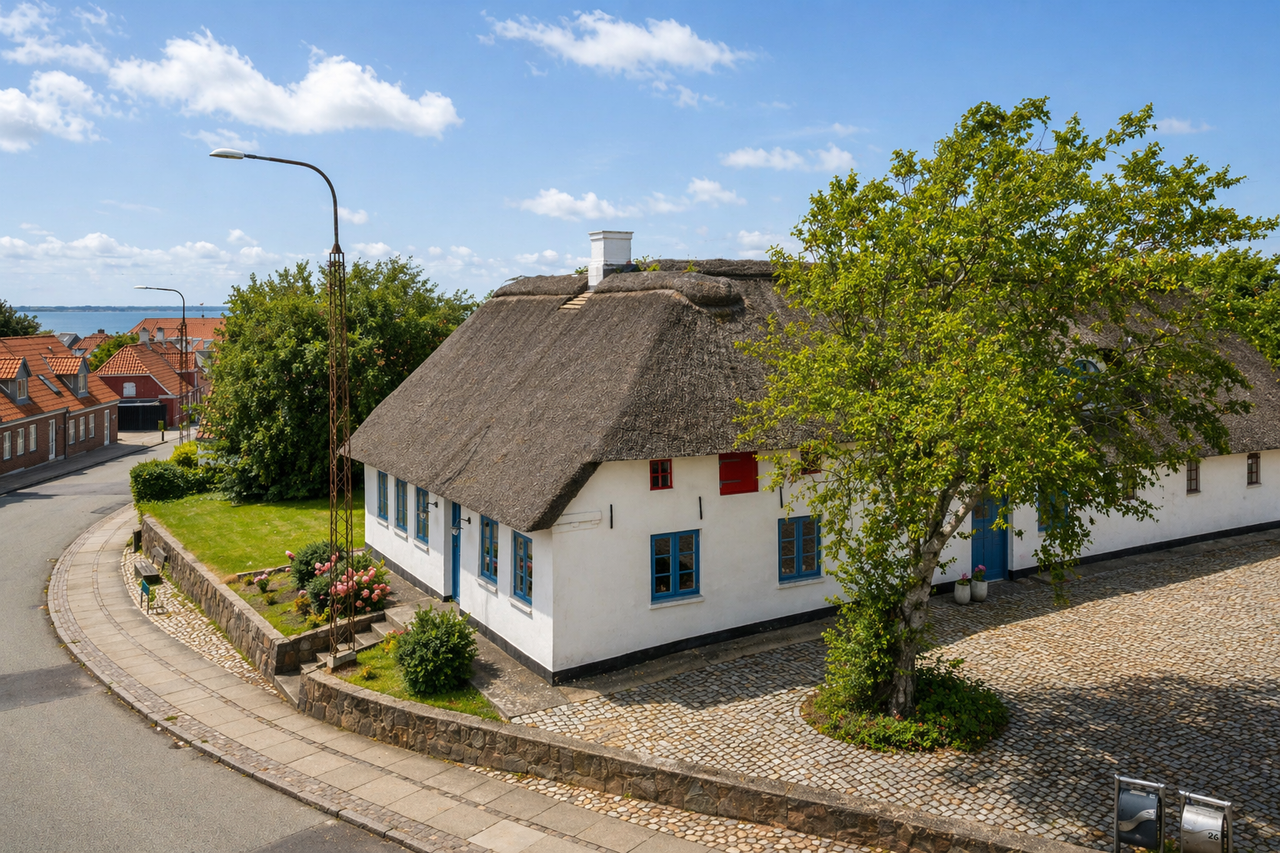 Midt i det charmerende og eftertragtede Hjerting udbydes nu denne helt unikke ejendom - en ægte klassiker fra 1867, hvor historie og moderne komfort går hånd i hånd. Her får du en smuk og karakterfuld ejendom med stråtag og et boligareal på hele 235 m², som emmer af stemning og sjæl.