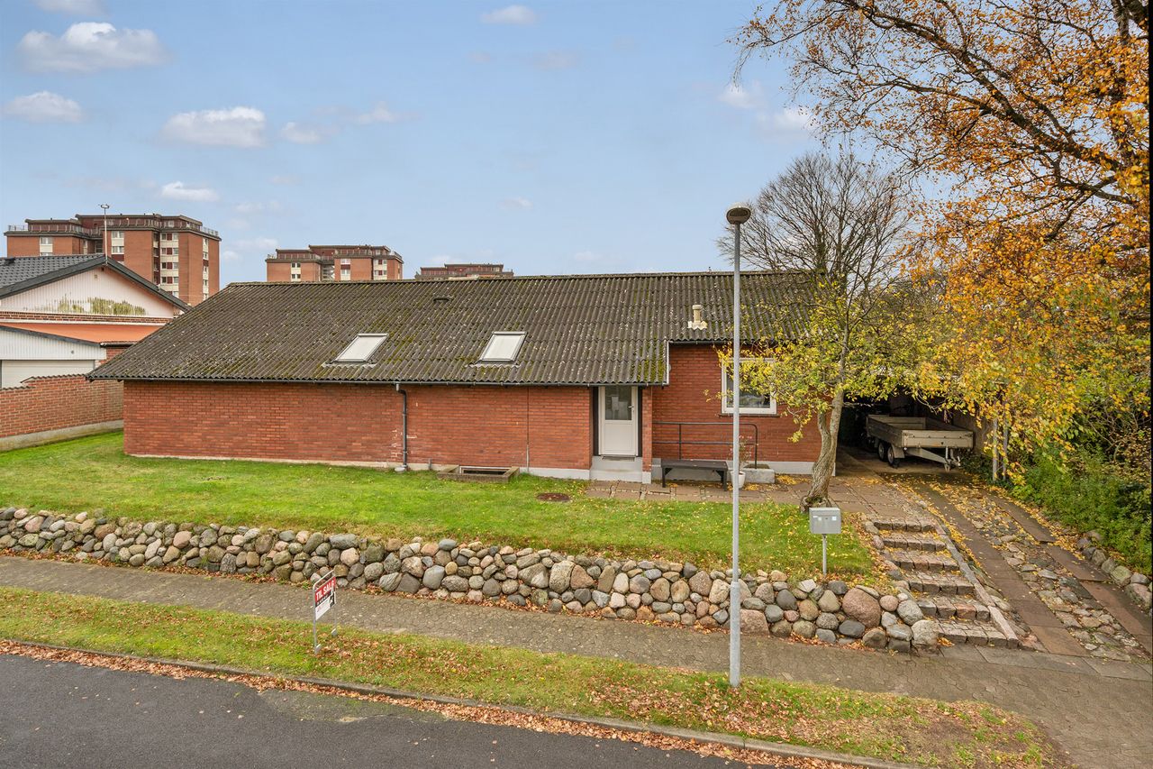 Huset ligger for enden af en lukket vej i et roligt og trygt kvarter – tæt på Platformen, dagligvarebutikker og gode fritidsfaciliteter.