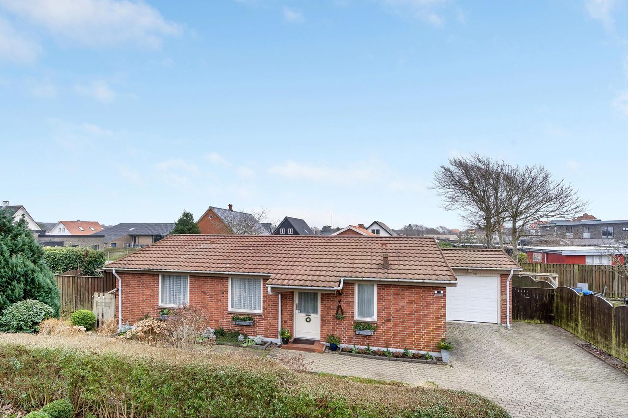 Til ejendommen høre en fin garage med elektrisk porthejs og lukket solvendt have.