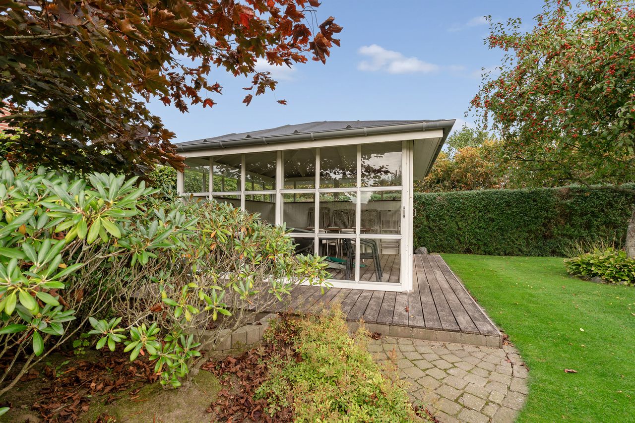 Udendørs får I en lukket og ugeneret FLOT have med flere skønne terrassemiljøer og hyggelige lækroge, samt det skønneste orangeri. Perfekt til både afslapning og leg.