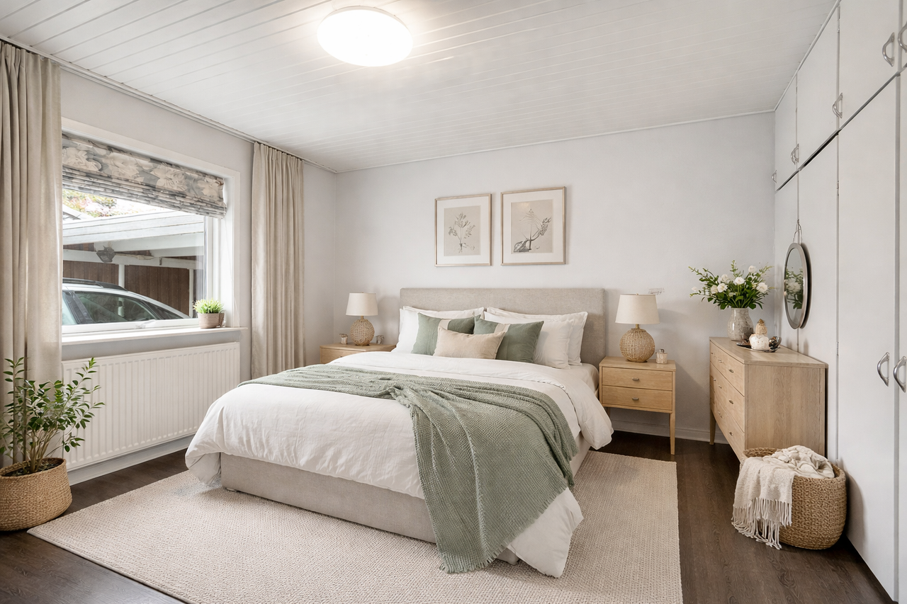 Boligen fremstår med flotte trægulve i stuen hvor der også er udgang til den skønne solvendte have og terrasse. Desuden er alle lofter i boligen blevet malet rigtig pæne og i hvid farve.
