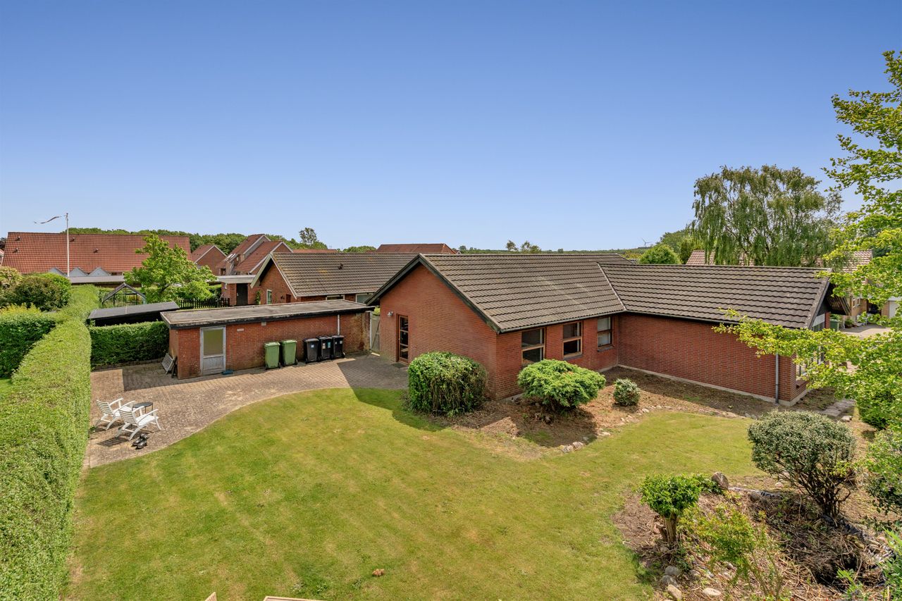 Derudover får du en muret garage med tilstødende udhus - perfekt til opbevaring eller hobbyrum.