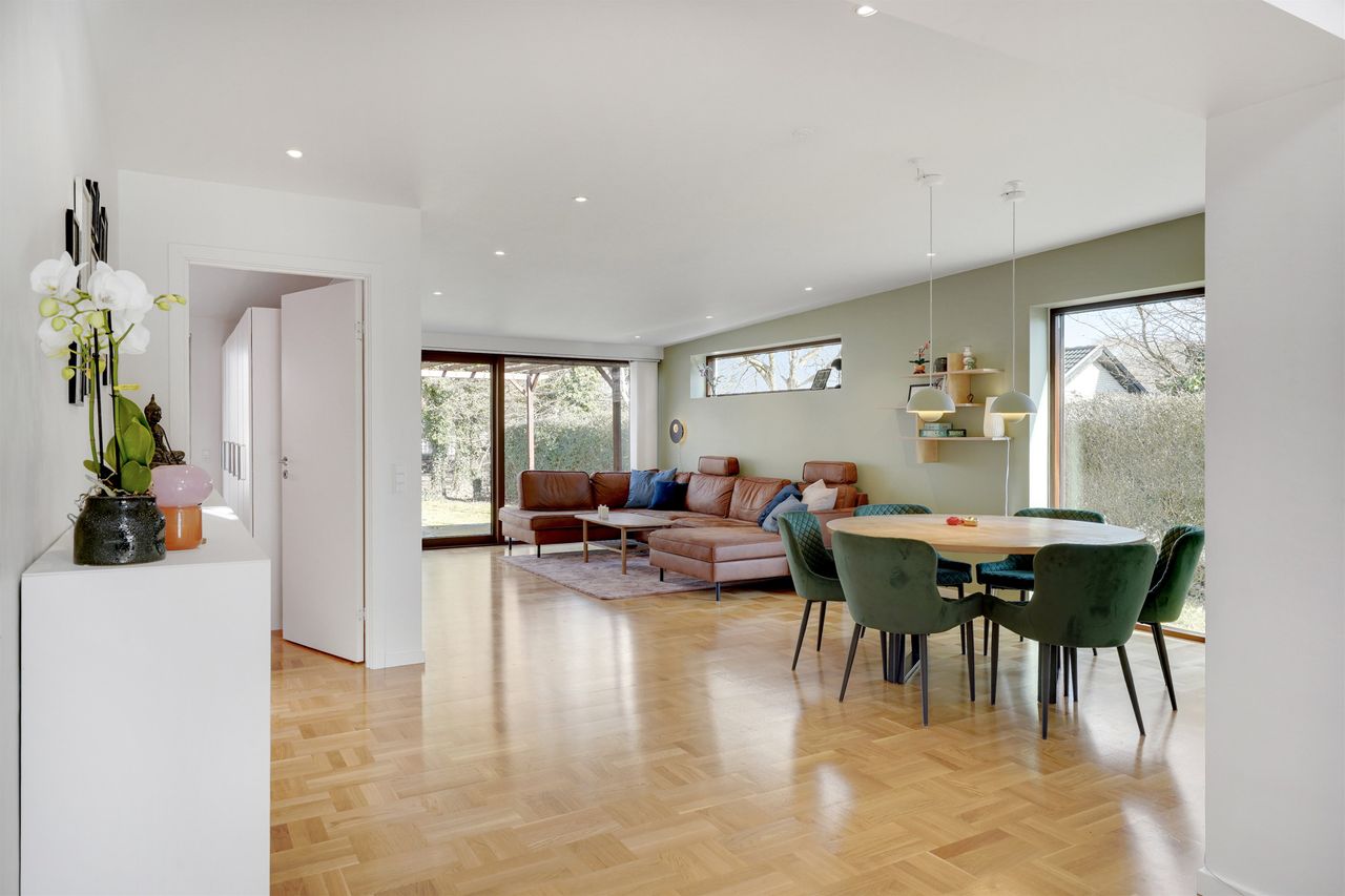 Boligen fremstår totalrenoveret og yderst velindrettet uden spildplads. Planløsningen er gennemtænkt og ideel til børnefamilien med flere gode værelser og to badeværelser, så hverdagen glider nemt.