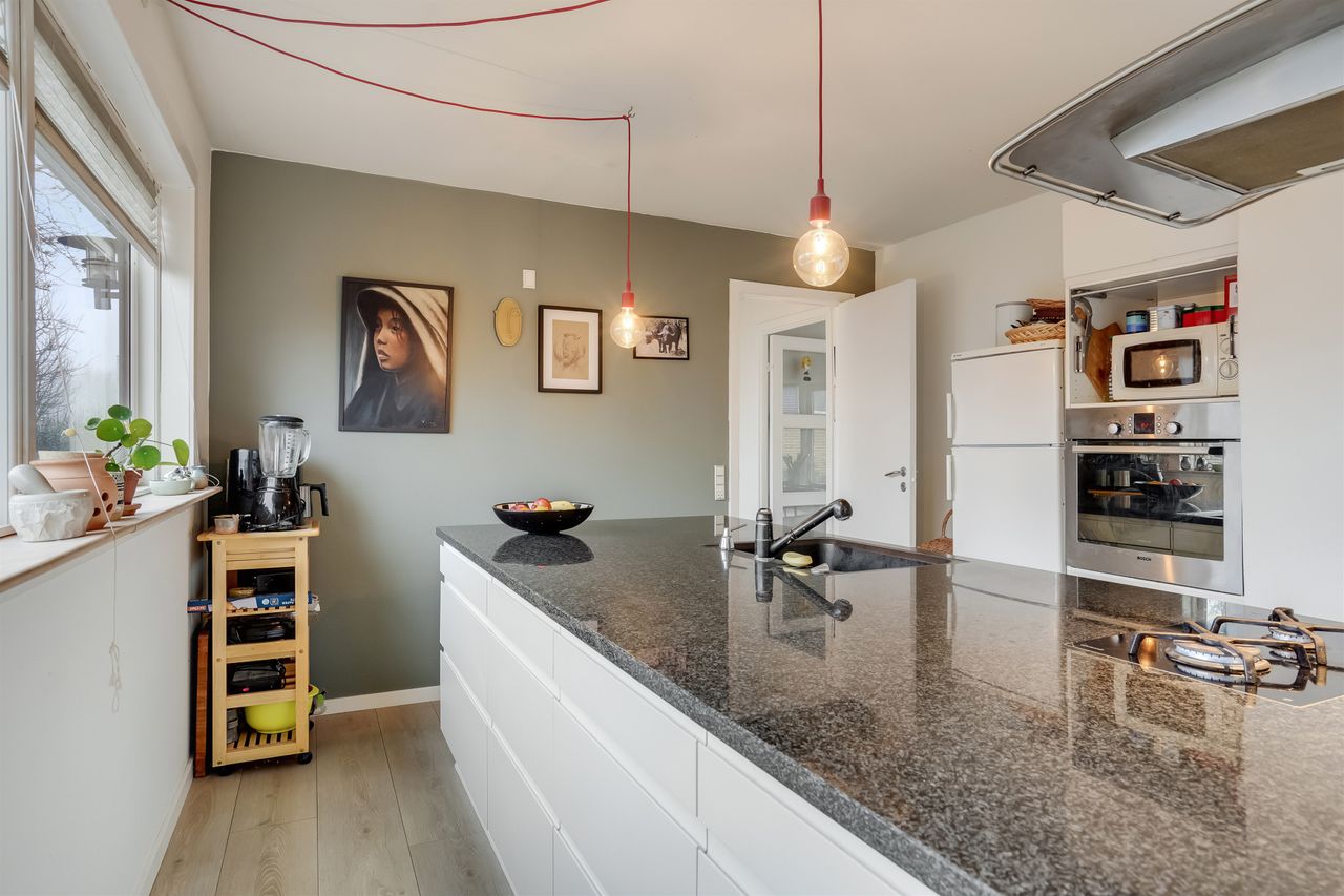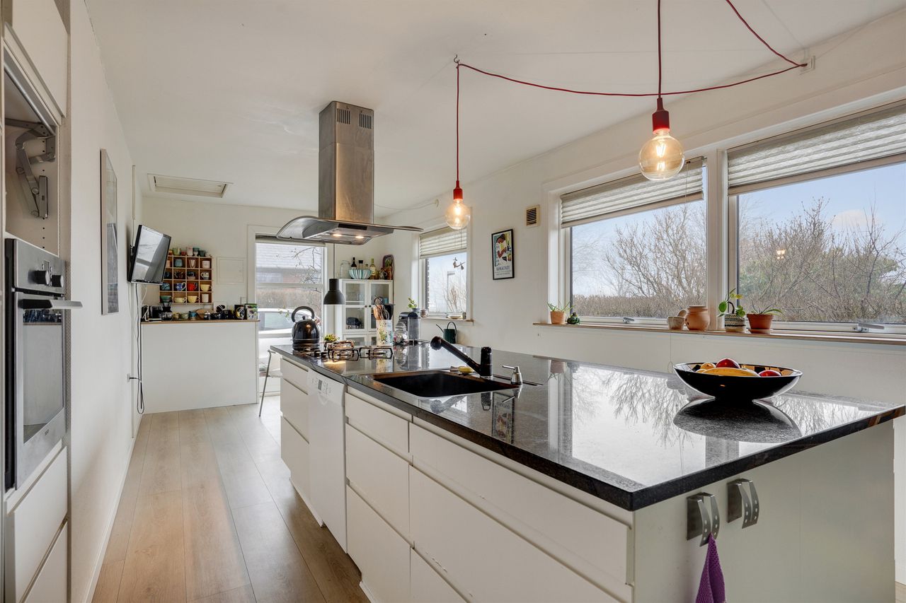 Man bydes velkommen i entréen med klinkegulv og god plads til overtøj. Herfra er der adgang til husets badeværelse med bruseniche. Køkken/alrummet fremstår lyst og moderne med god skabsplads, køkkenø og flot lysindfald fra vinduerne – et naturligt samlingspunkt i hverdagen. Køkkenet ligger i direkte forbindelse med den store opholdsstue, og der er mulighed for at etablere mere åben planløsning, hvis ønsket.