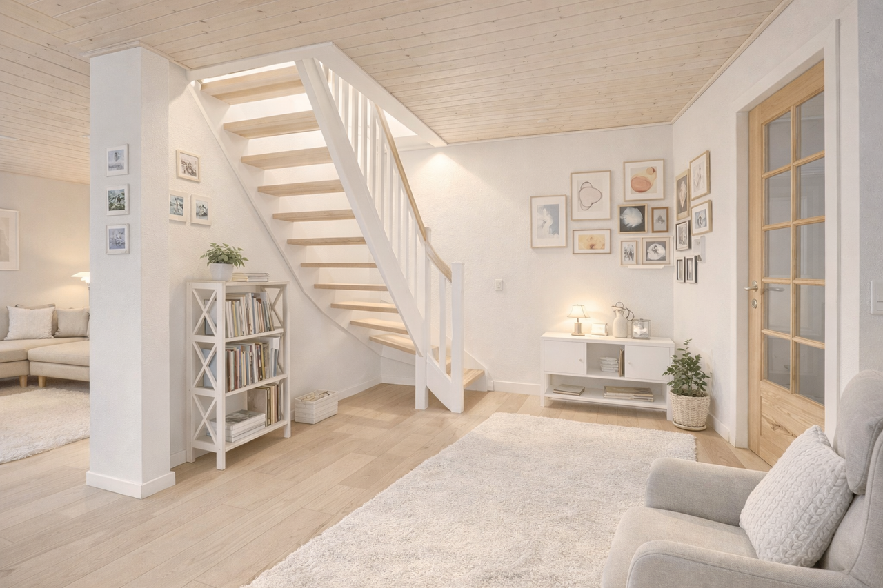 I stuen er der trappe til 1. sal som indeholder følgende:
