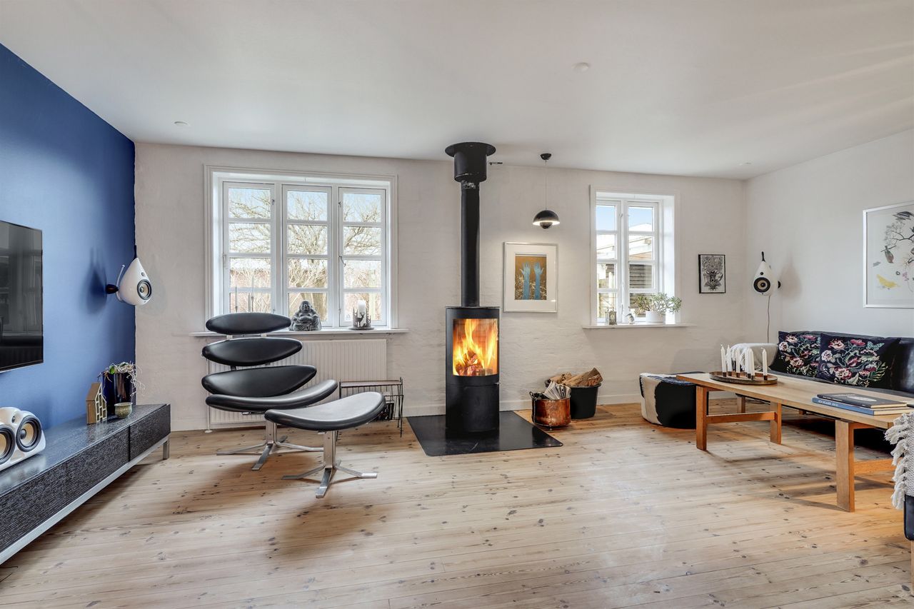 Boligens hjerte er det lyse og indbydende alrum i åben forbindelse med køkkenet. Her er god plads til både hverdag og gæster, og de store vinduespartier sikrer et dejligt lysindfald. Fra alrummet er der nem adgang til stuen, som fremstår hyggelig og oplagt til afslapning.